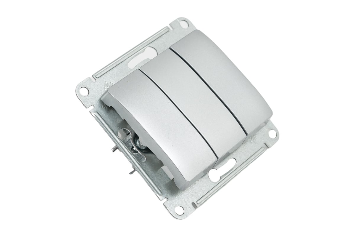 3-клавишный механизм выключателя Systeme Electric скрытой проводки Glossa 10А IP20 1+1+1 10AX алюминий GSL000331