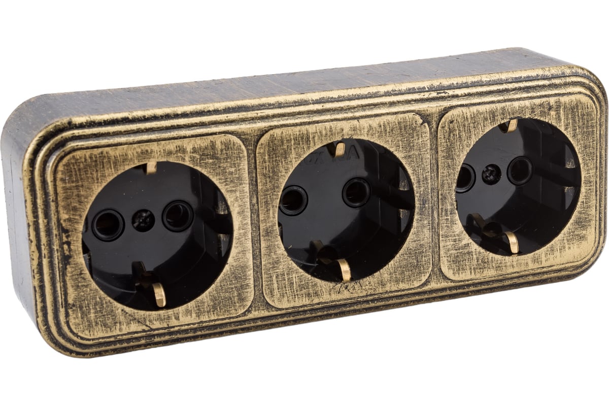 3-местная розетка SVET RA 16-365-Черная Бронза открытой установки с заземлением EV0311-0057