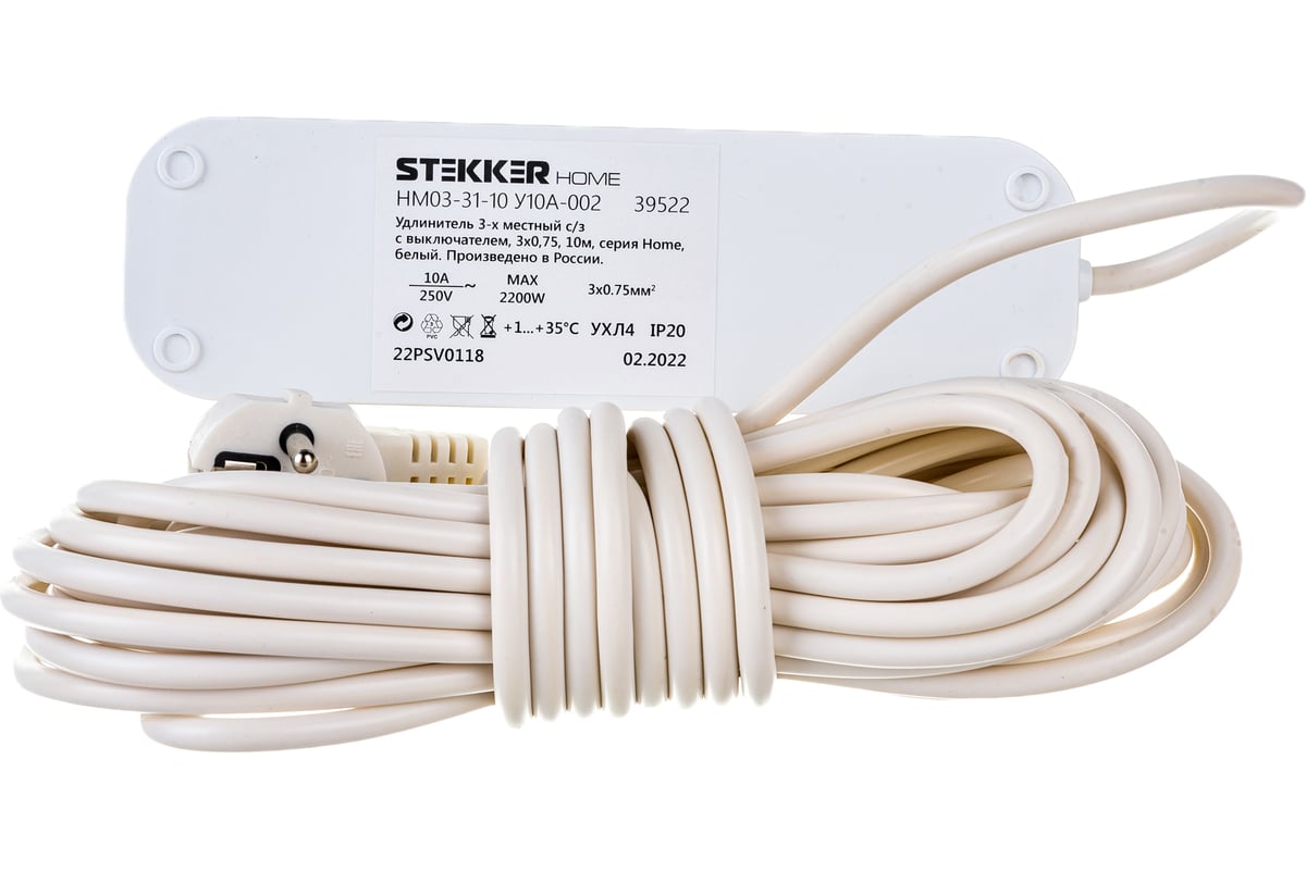 Вопросы и ответы об удлинителе STEKKER с заземлением с выключателем, 3x0,75мм2, 10м, 10А, У10А-002, белый HM03-31-10 39522