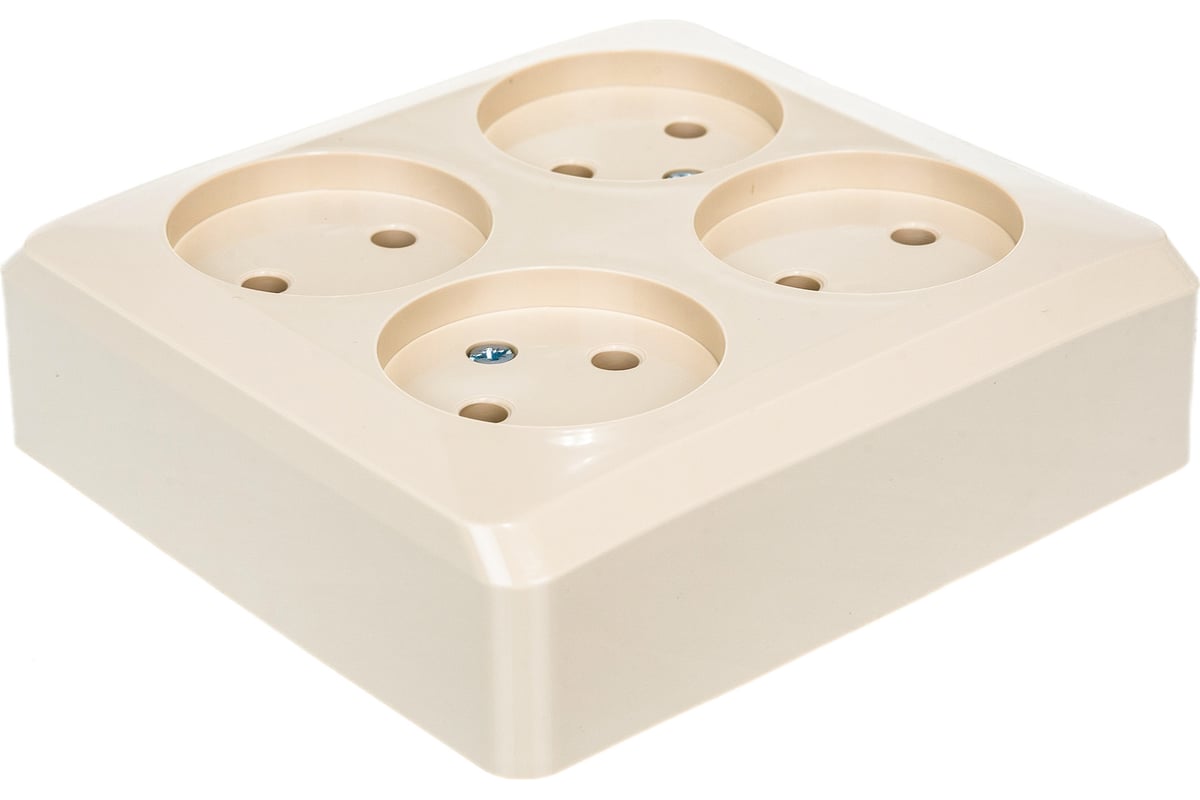 Розетка Systeme Electric (ранее Schneider Electric) ЭТЮД (кремовый, открытой установки) четырёхместная, без шторок и заземления.