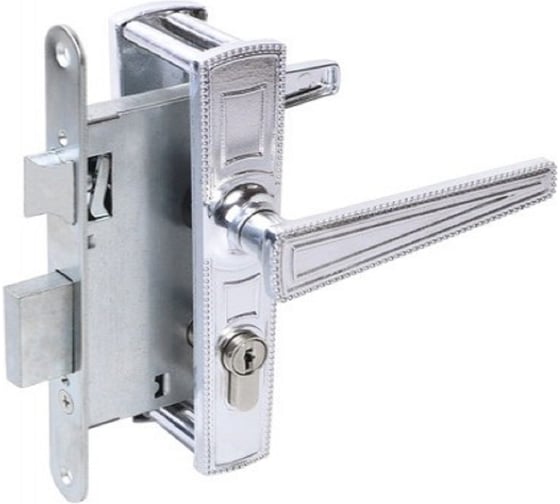Замок врезной Абсолют ЗВ4-3/01 (Хром) с ручками и цилиндром. Рекомендованы для установки на деревянные двери толщиной полотна 35-45 мм, правого и левого открывания.
