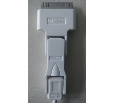 Всего три разъёма для передачи данных: micro USB, mini USB и Apple 30-pin. Последний пригодится, например, для IPad 1, IPad 2 и IPad 3.