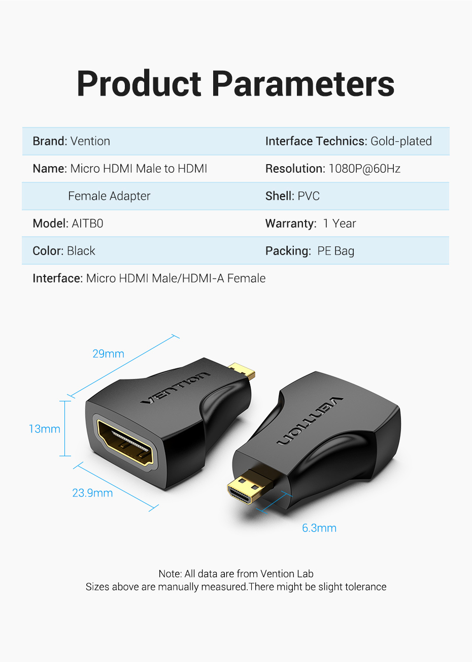 Вопросы и ответы об адаптере-переходнике VENTION HDMI 19F/micro HDMI 19M AITB0