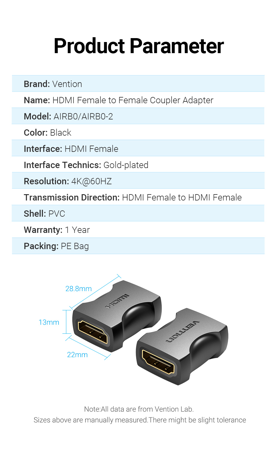 Технические характеристики VENTION HDMI v2.0 19F/19F AIRB0