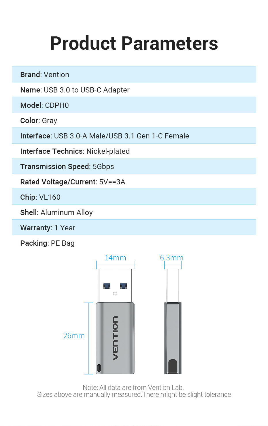 Технические характеристики VENTION OTG USB-CF / USB 3.0 AM CDPH0