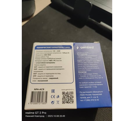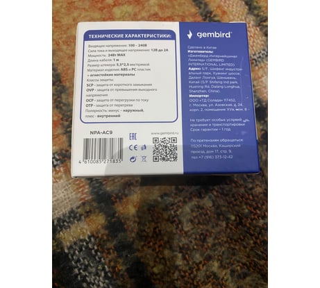 Вопросы и ответы об адаптере питания Gembird 12В/2А, 1 штекер 5,5x2,5мм NPA-AC9