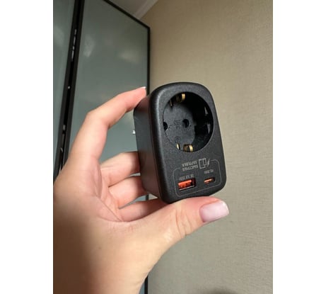 - Разветвитель включает в себя: 1 розетка (с защитными шторками) + 2 USB (USB-A 18Вт + USB-C 20Вт). Разъемы позволяют подключать одновременно несколько устройств, таких как планшеты, смартфоны или любые другие гаджеты, не занимая при этом стандартные розетки.