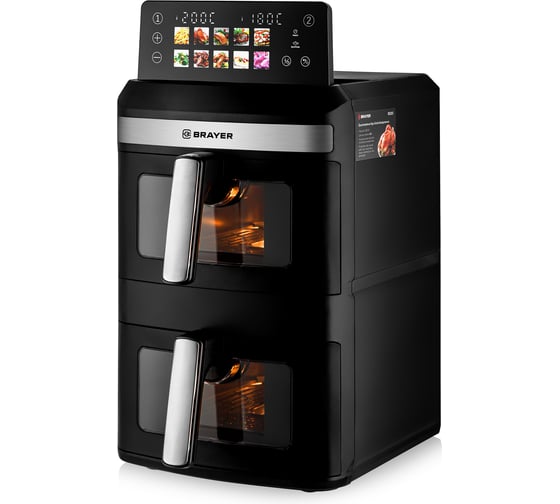 Аэрогриль BRAYER 2051BR 2800 Вт,13 л, 2 чаши, t. 200С, съемная решетка, LED-дисплей, 10 программ BR2051