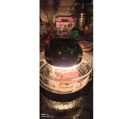 Вроде бы вместительный, удобный аэрогриль. Можно даже целую курицу вместить. Но есть недостаток, который снял три звезды сразу. После второго использования треснула чаша вся вкруг по дну, кольцом (если потянуть вверх, дно останется на месте). Готовили шашлык в маринаде, жидкость стекла надно, там нагрелась и чаша лопнула. Хотя указано, что стекло жаропрочное. Есть дома аэрогриль поменьше, этот брали ему на замену, семья растёт. Так вот в маленьком ни разу такого чуда не было. Продолжаем готовить в треснутой чаше, выстилая на дно фольгу и выбрасывая ее после приготовления. Чтобы не контовать, дабы не доломать. Денег на новую чашу нет, новая на 12 литров стоит от 5000 рублей. Аэрогриль целиком стоил 4893р, брали в рассрочку, так как доходы, сами знаете. В общем, обидно.