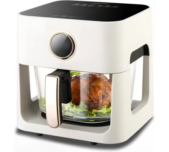Мощный аэрогриль электрический - 1200 Вт, стеклянная чаша из закаленного стекла 4 л , таймер на 1-60 минут, регулятор температуры 80-200С градусов, сенсорное управление, большой LED дисплей, автоматическое отключение нагрева при извлечении чаши, защита от перегрева, длина шнура 80 см.