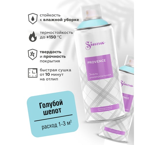 Аэрозольная акриловая краска в баллончике SIANA Provence для мебели, декора, металла, пластика, керамики, стекла, гипса, сухоцветов, цветов, радиаторов, быстросохнущая, голубой шепот SNP005