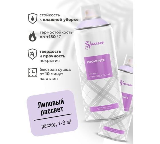 Аэрозольная краска в баллончике Siana SIANA для мебели, декора, металла, пластика, керамики, стекла, гипса, сухоцветов, цветов, радиаторов, быстросохнущая лиловый рассвет SNP011