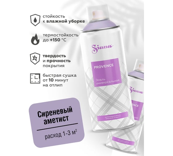 Аэрозольная акриловая краска в баллончике для декора SIANA Provence для мебели, металла, пластика, керамики, стекла, гипса, сухоцветов, цветов, радиаторов, быстросохнущая, сиреневый аметист SNP016