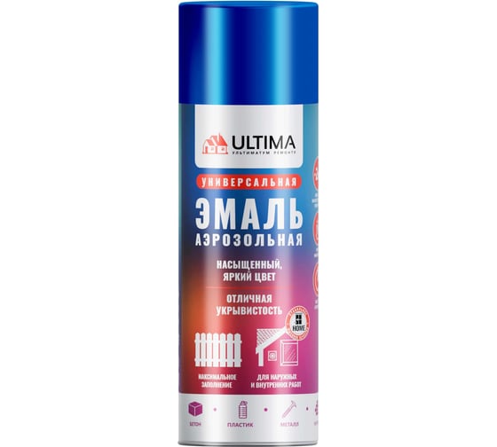 Аэрозольная краска ULTIMA "морской синий металлик" 520 мл предназначена для профессионального и бытового применения.