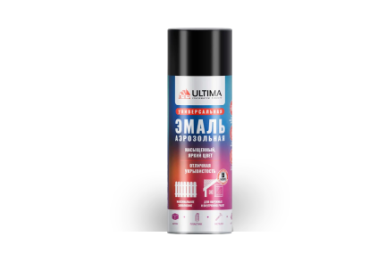 Аэрозольная акриловая краска ULTIMA в цвете RAL 9005 (черный) предназначена для профессионального и бытового применения.