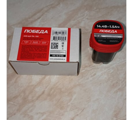 Данный аккумулятор купила для цепной пилы Победа ПА-150. Аккумулятор марки АКБ ДА ПА-150 был упакован в картонную коробку, на которой указаны его характеристики, информация о дате изготовления, серийном номере и прочее. Заряжен примерно на половину. Пила с ним сразу включилась. Надолго ли хватит заряда аккумулятора, ещё не проверяла.