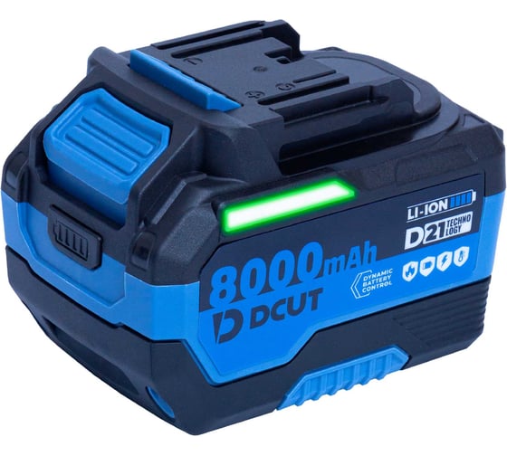 Аккумулятор DCUT DABA0821 имеет ёмкость 8 А·ч и напряжение 21 В, что даёт серьёзный запас автономности даже при работе с мощным инструментом. Типоразмер корпуса D21 и масса около 1 кг делают батарею совместимой с линейкой соответствующих моделей DCUT.