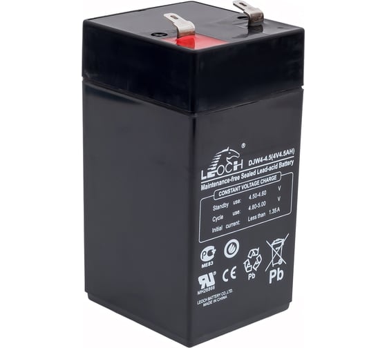 Аккумулятор DJW4-4.5 Leoch УТ-00001288 это необслуживаемая батарея с напряжением 4 Вольт и емкостью 4,5 Ач (4.5 Ah). Благодаря технологии AGM ударопрочный корпус из ABS-пластика полностью герметичен и не требует обслуживания.