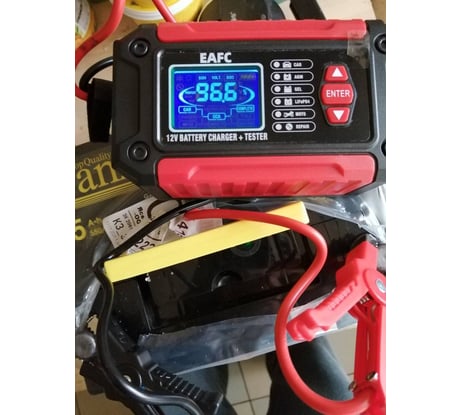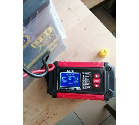 получен. в отличном состоянии индикация четкая зеленого цвета. напряжение на клеммах 12.75 В.