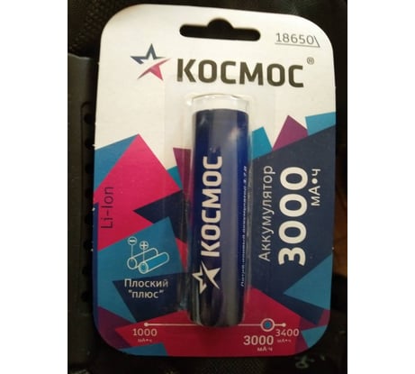 Аккумулятор КОСМОС 18650 Li-ion 3000 mAh без защиты с плоским контактом, 1 шт блистер, KOC18650Li30FLBL1