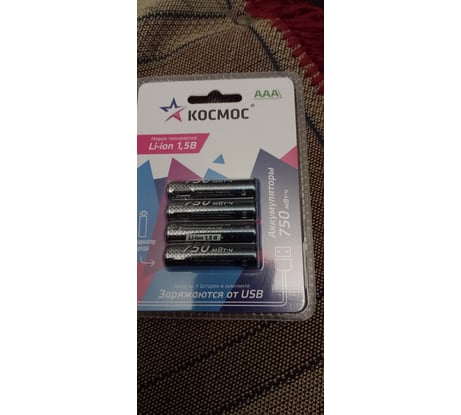 Аккумулятор КОСМОС ААА Li-ion 500мАч 4 шт в на блистере KOCR03Li750mWh4BL
