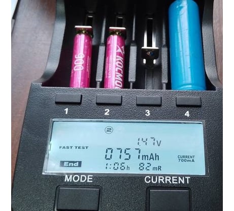 После трех циклов разряд-заряд, емкость батареек ~650 mAh