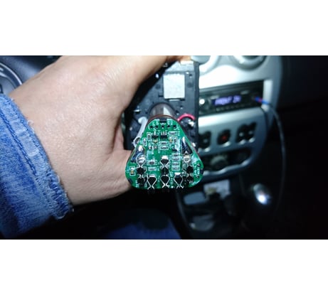 Маленький, намного меньше других, прорезиненный, шурик ставится на него, очень удобно, емкость и чуствуется мотор работает стабильние под нагрузкой.