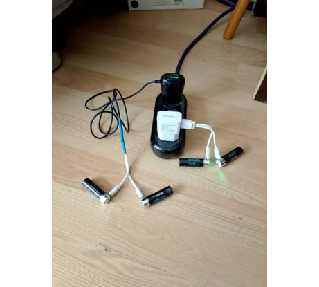 В комплекте идет один шнурок для зарядки, а элементов четыре, пришлось паять, чтобы заряжать одновременно все элементы