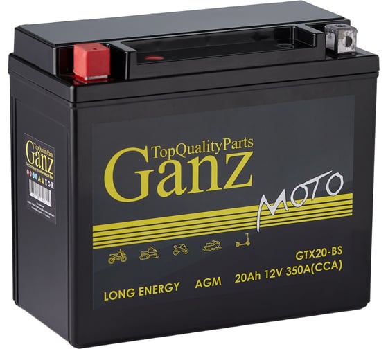 Аккумулятор мото GANZ AGM 20 А/ч прямой L+ 177x88x155 мото EN 350 А GN12201