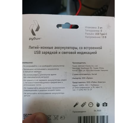 Вопросы и ответы об аккумуляторе Рубин LI-ION размер D 1,5 В 9000mWh USB Type C с кабелем РЭ-D9000/1