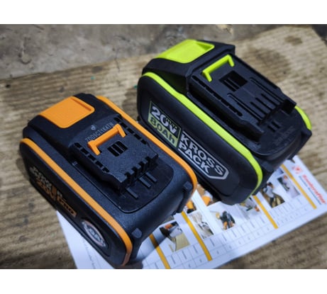 У нового worx есть 3 линейки инструментов и аккумов соответственно: 1. "Оранжевый" - продаëтся в Европе и у нас, 4пина на аккумуляторе и надпись "power share" - внутри банки самсунг. 2. "Зелëный" - рынок Азии, 5 пин и надпись "kross pack", подходит для зелëного воркс, kress, CAT. 3. Оранжевый на 6 пин- рынок Америки. Покупал для шуруповёрта cat dx13, так как в комплекте к нему тяжелее 4а аккумы. Воркс оказались дешевле, зарядкой заряжаются, в инструменте раюотают