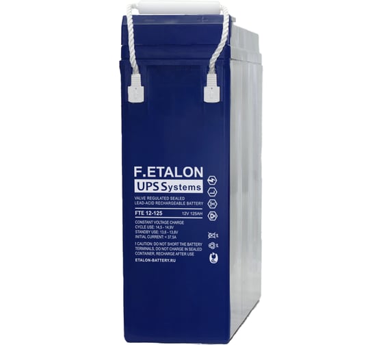 FTE 12-125 является фронт-терминальной свинцово-кислотной аккумуляторной батарей, изготовленной по технологии AGM, класс VRLA. Серия F.ETALON спроектирована под применение в мощных источниках бесперебойного питания. Отличительная особенность – высокая надежность, устойчивость работы при циклическом режиме, превосходные разрядные характеристики на коротких временах разряда.