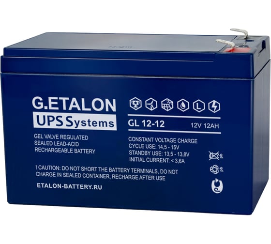 Аккумулятор ETALON GL 12-12 является стационарным свинцово-кислотным необслуживаемым и изготовлен по технологии Gel . Серия G.ETALON спроектирована под применение в мощных источниках бесперебойного питания. Отличительная особенность – высокая надежность, устойчивость работы при циклическом режиме, превосходные разрядные характеристики на коротких временах разряда.