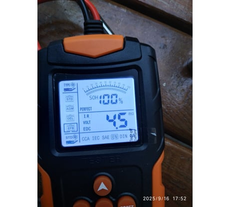 Всем привет! При получении аккумулятора поначалу смутила маркировка даты выпуска, так как вторая цифра "2" раньше соответствовала году выпуска, то есть 2022 год. Я уже хотел отказаться от покупки, но продавец магазина Нурахметов Ирек Раилевич, помог мне в Сети найти информацию об изменении маркировки кода, за что ему большое спасибо. Оказывается, в 2025 году маркировка даты выпуска на аккумуляторах Мутлу изменилась, и теперь она содержит 2 латинские буквы, которые соответствуют году и месяцу выпуска батареи. В магазине я замерил напряжение на клеммах, оно составило 12,78 В, индикатор ареометра горел зеленым огоньком, это уже порадовало. Из магазина я поставил аккумулятор сразу на машину, так как мой старый АКБ уже умер. Приехав на дачу, за 50 км от города, я китайским тестером замерил параметры АКБ. Результаты были отличные. Внутреннее сопротивление 4,5 мОм, напряжение 13 вольт, пусковой ток 632 А (при заявленных 540А). По всем параметрам 100% результат! Аккумулятор получил запаянный в заводскую пленку. Все супер!