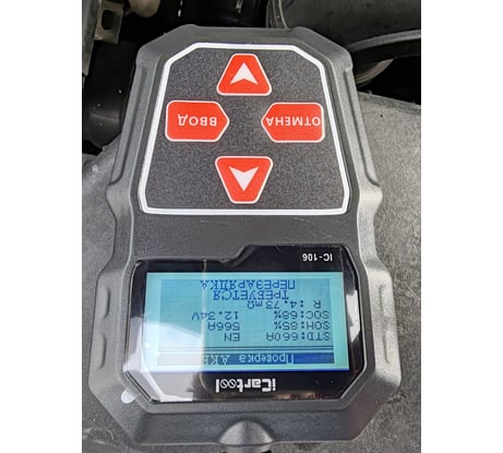 Аккумулятор не полностью заряжен. Хотя индикатор показывает 100 готовность, при проверке нагрузочной вилкой - прибор указывает на необходимость подзарядки, хотя заряда, как оказалось, достаточно для запуска двигателя. Аккумулятор оказался 2024 года выпуска (почти год).