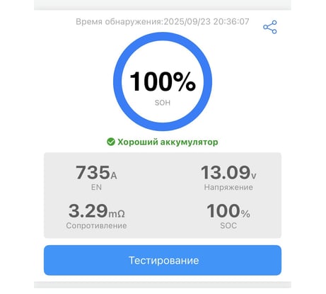 Пришел хорошо упакованный без повреждений, внутри есть заглушкадлягазов на одну из сторон крышки аккумулятора. Напряжение 12,74 вольта, soh 95, пусковой 688 при заявленных 720А. После подзаряда при 14,3 вольта кулоном 720 аккумулятор взял на себя 11 ампер и soh стал 100%, пусковой 735- больше чем по заводским параметрам👍 Аккумулятору почти год куплен в сентябре 25го, изготовлен в ноябре 24го. На машину еще не ставил, позже дополню отзыв