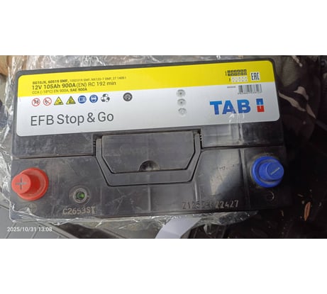 АККУМУЛЯТОР: TAB EFB Stop & Go 105 Ah КОД: Z12524F22427 → 4 июля 2024 ТЕСТ: KONNWEI KW720 → ХОРОШАЯ АКБ SOH: 100% → НОВЫЙ ПО ЁМКОСТИ SOC: 83% → ПОДЗАРЯДИТЬ ДО 100% CCA: 943 А → МОЩНЕЕ НОМИНАЛА R: 3.09 мОм → ОТЛИЧНО МОЖНО СТАВИТЬ: ДА РЕКОМЕНДАЦИЯ: Зарядить 6–8 часов током 10 А