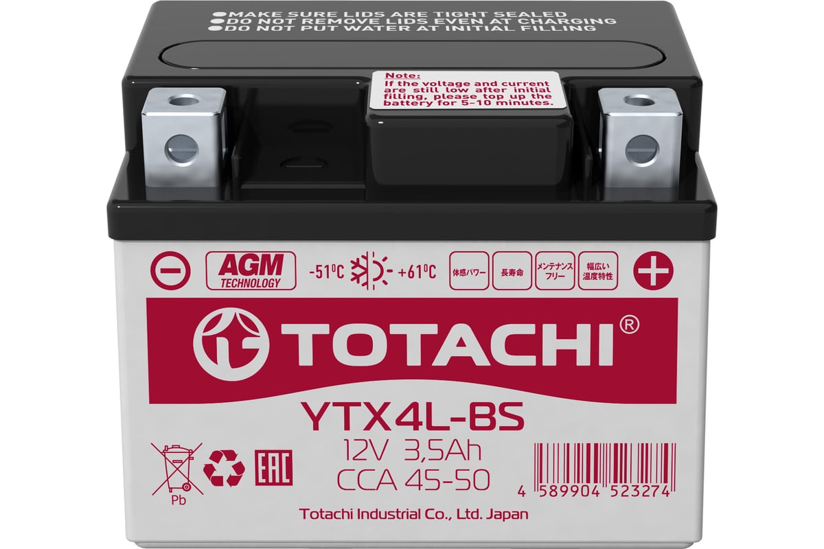 Аккумуляторная батарея TOTACHI CMF 3.5 а/ч YTX4L-BS L AGM 90035