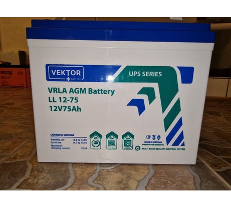 Батарея аккумуляторная VEKTOR BATTERY LL 12-75 изготовлена по технологии AGM.