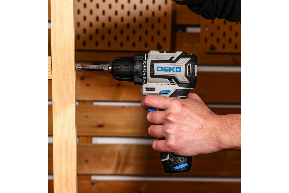 Аккумуляторная бесщеточная компактная дрель-шуруповерт DEKO Loner 12V PRO в кейсе, 12В, 2x3.0Ач 085-1011