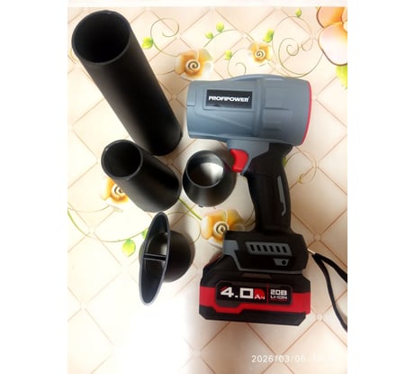 Аккумуляторная бесщеточная воздуходувка PROFIPOWER "Tornado" MKBUB-20В (20В, Li-ion-1шт, 4.0Ач, З/У, с насадками, в коробке)