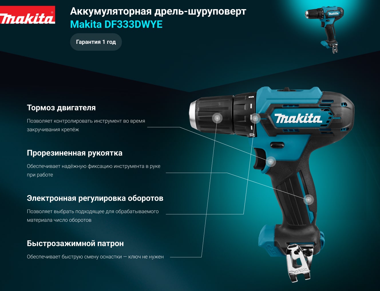 Аккумуляторная дрель-шуруповерт Makita DF333DWYE