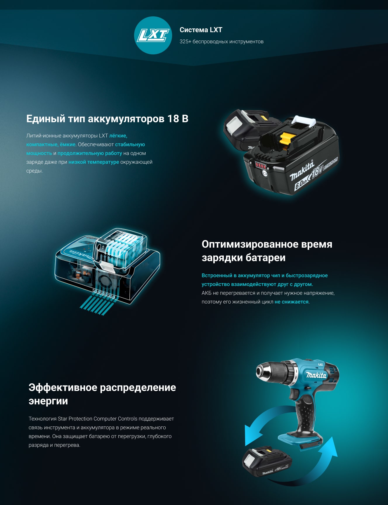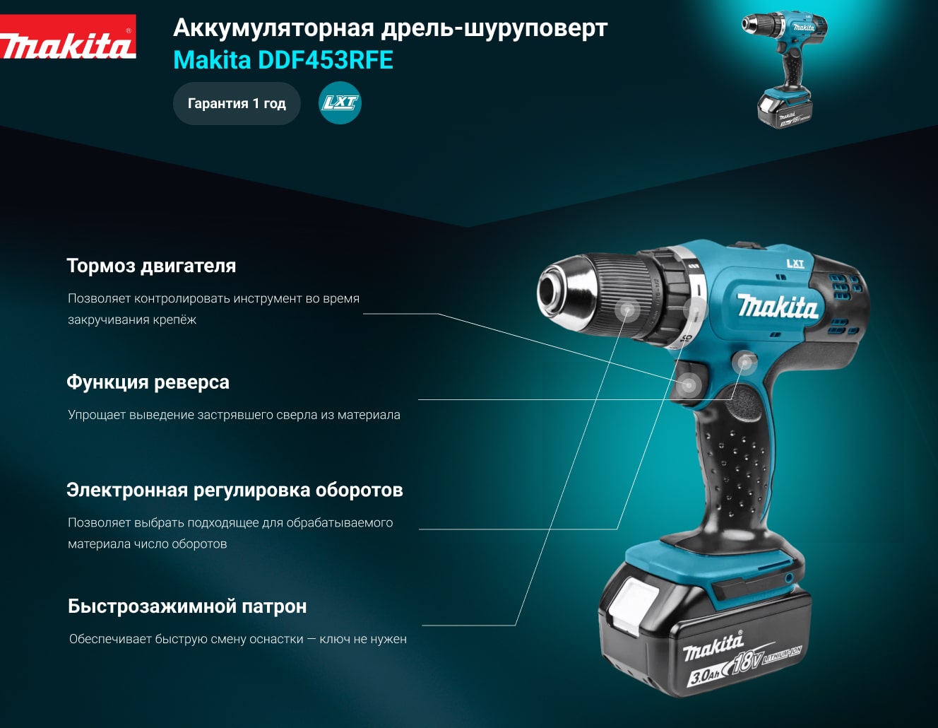 Аккумуляторная дрель-шуруповерт Makita LXT DDF453RFE