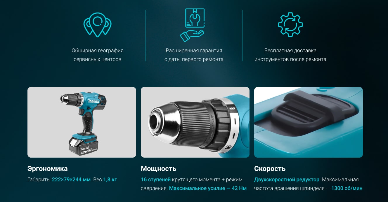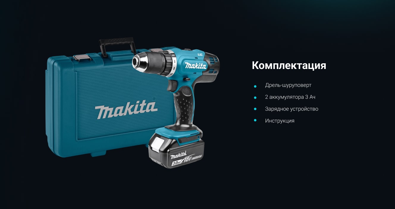 Лучший шуруповерт по соотношению цена/качество/приятные ощущения (со странностями) Доброго времени суток всем подбирающим инструмент для работы и себя любимого! Хотел бы рассказать о своем опыте практического использования на производстве и по пунктам оценить данную модель шуруповерта, которая преподнесла мне интересный сюрприз, но об этом в дальнейшем. Начнем пожалуй с того, что обязан делать каждый шуруповерт в первую очередь - крутить! [КРУТЯЩИЙ МОМЕНТ] Машинка с крутящим моментом 42 Нм. позволяет закручивать саморезы большого размера по паспорту, но по-честному, в моем случае крутит монструозные дюбель-шурупы по бетону 7.5*202 мм. в деревянную балку на полную глубину, и прекрасно себя чувствует! А держа такого звереныша в руке отлично чувствуешь и себя. Напомню, что для большинства столярных нужд (закручивание/выкручивание саморезов, сверление отверстий) достаточно 10-12 Нм. [МОЩНОСТЬ] Шуруповерт оснащен щеточным двигателем на 18в. Тут без вопросов, доказательства в предыдущем пункте. Недостаточно? часто работаю большим сверлом форстнера 50мм, поверхность чистейшая! Все почести инженерам Makita за то, что смогли засунуть такое в весьма компактный корпус! Работает мощно, работает тихо. [ЧАСТОТА ВРАЩЕНИЯ] Весьма важный показатель, который должен разнится при выполнении конкретных работ. Выкручивание закипевшего болта и сверление отверстия миллиметрового диаметра очевидно отличаются по скорости работы. Для сверления потребуется около 1000 оборотов в минуту Для крепежных работ – до 500 оборотов минуту Макита в данном случае предоставляет плавную, и я имею ввиду действительно плавную (!) и удобную регулировку оборотов курком в двух диапазонах 0-500 и 0-1300 об/мин. [ТИП ПАТРОНА] На данной моделе шуруповерта установлен трехкулачковый быстрозажимной патрон. Надежно удерживает сверло или биту, а также позволяет легко их заменить. Зажимается с минимальным усилием. Люфт по направляющей отсутствует полностью. Проблем с патроном не замечено, полет нормальный. [ЭРГОНОМИКА И УДОБСТВО ИСПОЛЬЗОВАНИЯ] На насыщенном конкурентами поле электроинструмента, лично я считаю, что удобство играет первостепенную роль. Особенно удобство такой вещи как шуроповерт. Всегда в деле, всегда в руках или на поясе. Здесь данная моделька приятно удивляет и показывает конкурентное преимущество. Являясь полноразмерной дрелью-шуруповертом имеет довольно компактные размеры и не забивает руку при длительной работе, масса в сборе - 1,8 кг. Удобно лежит в руке благодаря мягкой обрезиненной рукоятке. Правильно расположенный переключатель реверса. Качество сборки ожидаемо на высоте. Имеются отверстия под крепления на пояс и технологическое отверстие под ремень. Ни того, ни другого в комплекте не поставляется. Почему? Загадка для меня! Удобство - 5 баллов с небольшим минусом-непониманием, держу в руках каждый день радуется душа и глаз. [АККУМУЛЯТОР] Отдельно хотелось бы рассказать про этот пункт. По-началу думал, что с индикацией заряда что-то не так, почти всегда показывает полный заряд, даже при постоянной работе в течении недели. По прошествии 12 дней без подзарядки, выяснилось, что индикатор умеет показывать и 2 палки! Позволяют добиваться таких показателей два комплектных аккумулятора 3 А*ч/18 в. Выполнены уже по стандартной технологии Li-Ion – да, дороже, да, реально столько стоя