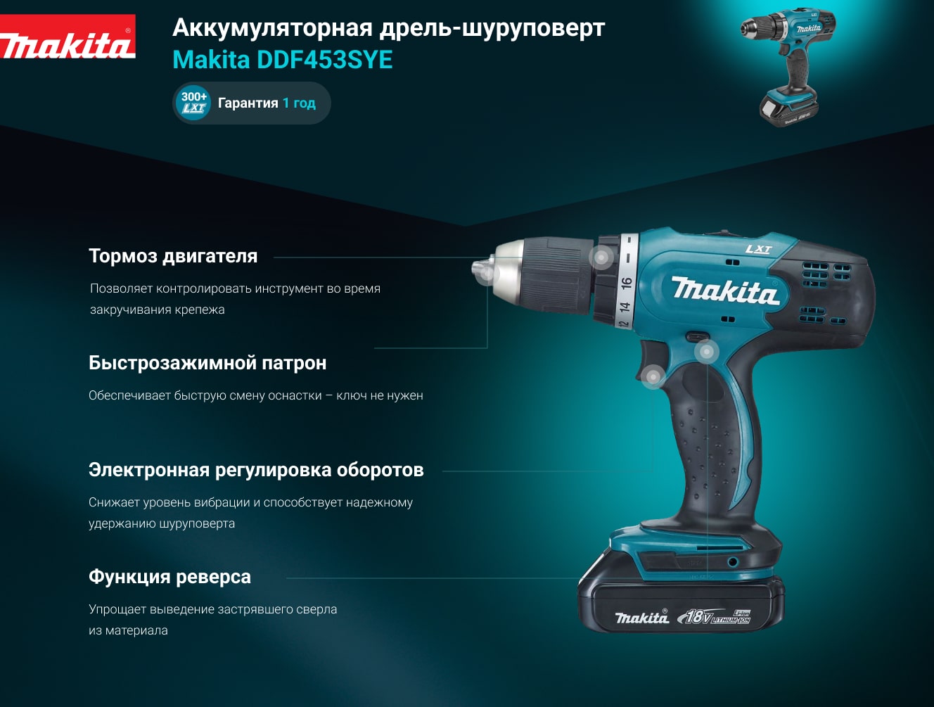 Преимущества Makita DDF453SYE