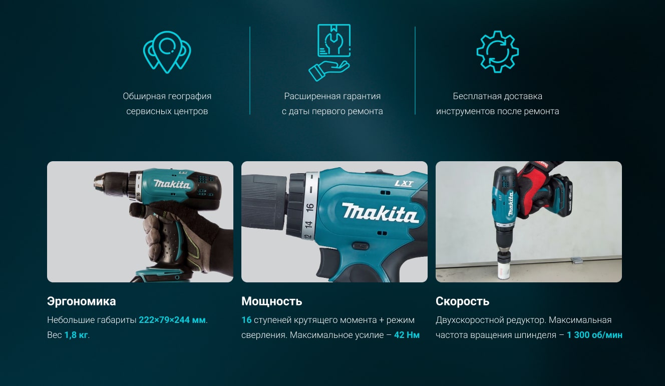 Лучший шуруповерт по соотношению цена/качество/приятные ощущения (со странностями) Доброго времени суток всем подбирающим инструмент для работы и себя любимого! Хотел бы рассказать о своем опыте практического использования на производстве и по пунктам оценить данную модель шуруповерта, которая преподнесла мне интересный сюрприз, но об этом в дальнейшем. Начнем пожалуй с того, что обязан делать каждый шуруповерт в первую очередь - крутить! [КРУТЯЩИЙ МОМЕНТ] Машинка с крутящим моментом 42 Нм. позволяет закручивать саморезы большого размера по паспорту, но по-честному, в моем случае крутит монструозные дюбель-шурупы по бетону 7.5*202 мм. в деревянную балку на полную глубину, и прекрасно себя чувствует! А держа такого звереныша в руке отлично чувствуешь и себя. Напомню, что для большинства столярных нужд (закручивание/выкручивание саморезов, сверление отверстий) достаточно 10-12 Нм. [МОЩНОСТЬ] Шуруповерт оснащен щеточным двигателем на 18в. Тут без вопросов, доказательства в предыдущем пункте. Недостаточно? часто работаю большим сверлом форстнера 50мм, поверхность чистейшая! Все почести инженерам Makita за то, что смогли засунуть такое в весьма компактный корпус! Работает мощно, работает тихо. [ЧАСТОТА ВРАЩЕНИЯ] Весьма важный показатель, который должен разнится при выполнении конкретных работ. Выкручивание закипевшего болта и сверление отверстия миллиметрового диаметра очевидно отличаются по скорости работы. Для сверления потребуется около 1000 оборотов в минуту Для крепежных работ – до 500 оборотов минуту Макита в данном случае предоставляет плавную, и я имею ввиду действительно плавную (!) и удобную регулировку оборотов курком в двух диапазонах 0-500 и 0-1300 об/мин. [ТИП ПАТРОНА] На данной моделе шуруповерта установлен трехкулачковый быстрозажимной патрон. Надежно удерживает сверло или биту, а также позволяет легко их заменить. Зажимается с минимальным усилием. Люфт по направляющей отсутствует полностью. Проблем с патроном не замечено, полет нормальный. [ЭРГОНОМИКА И УДОБСТВО ИСПОЛЬЗОВАНИЯ] На насыщенном конкурентами поле электроинструмента, лично я считаю, что удобство играет первостепенную роль. Особенно удобство такой вещи как шуроповерт. Всегда в деле, всегда в руках или на поясе. Здесь данная моделька приятно удивляет и показывает конкурентное преимущество. Являясь полноразмерной дрелью-шуруповертом имеет довольно компактные размеры и не забивает руку при длительной работе, масса в сборе - 1,8 кг. Удобно лежит в руке благодаря мягкой обрезиненной рукоятке. Правильно расположенный переключатель реверса. Качество сборки ожидаемо на высоте. Имеются отверстия под крепления на пояс и технологическое отверстие под ремень. Ни того, ни другого в комплекте не поставляется. Почему? Загадка для меня! Удобство - 5 баллов с небольшим минусом-непониманием, держу в руках каждый день радуется душа и глаз. [АККУМУЛЯТОР] Отдельно хотелось бы рассказать про этот пункт. По-началу думал, что с индикацией заряда что-то не так, почти всегда показывает полный заряд, даже при постоянной работе в течении недели. По прошествии 12 дней без подзарядки, выяснилось, что индикатор умеет показывать и 2 палки! Позволяют добиваться таких показателей два комплектных аккумулятора 3 А*ч/18 в. Выполнены уже по стандартной технологии Li-Ion – да, дороже, да, реально столько стоя