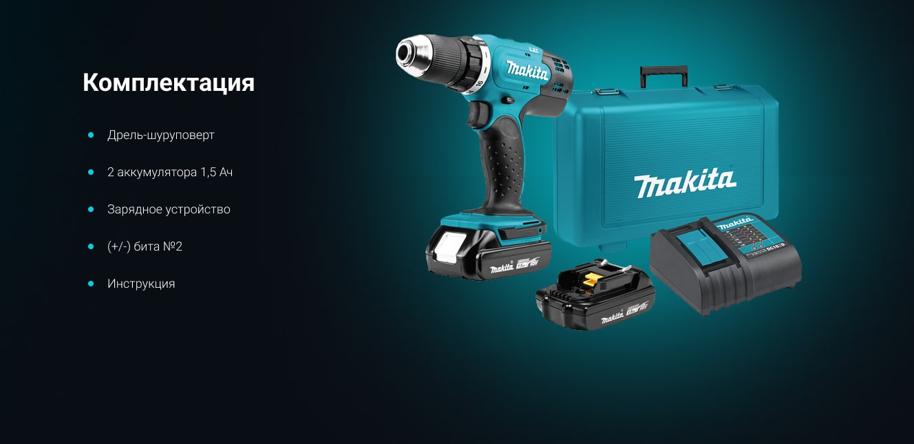 - Чемодан - для удобства хранения и транспортировки аккумуляторной дрели-шуруповерт Makita DDF453SYE.