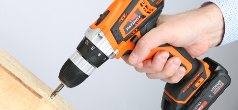- Удобство управления< Кнопка включения реверса расположена так, чтобы ее можно было сдвинуть одним пальцем. Она также блокирует пусковую кнопку при установке в среднее положение