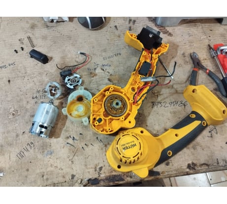 Для не требовательных работ. Двигатель начинает дымить от перегрузки, в итоге отлетели от перегрева контакты якоря, где ходят щетки. Сначала пила уходила в защиту. Если взяли, то советую не пилить ей лольше 15 сек и давать перерыв, обращайте внимание на искрение щеток. Акб хватает при умереном пилении на 30 мин. Акб подходит от типа "макита". Вообще не советую брать на постоянку инструмент с колекторным двигателем- не любят они перегрузки, а в даном случае здесь нагрузка приличная.