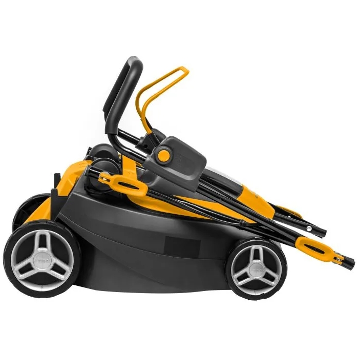 Для комфорта у газонокосилки есть две настройки высоты рукоятки с мягким покрытием, а рукоятка для переноски позволяет легко ее поднимать.